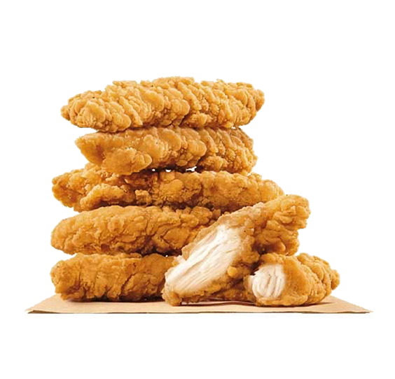 Pan de cristal horneado con carne de ternera o pollo, acompañada de queso cheddar, bacon, rodaja de tomate natural, cebolla morada, cebolla frita con ración de patatas.