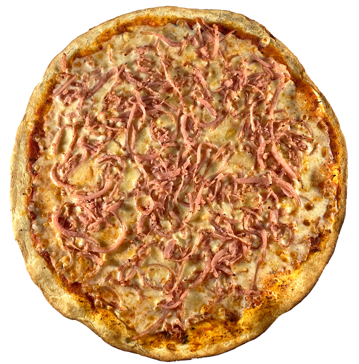 Pizza de Jamon York en tiras. Combinación sencilla para saborear un buen jamón y la mozzarella 100% pura.