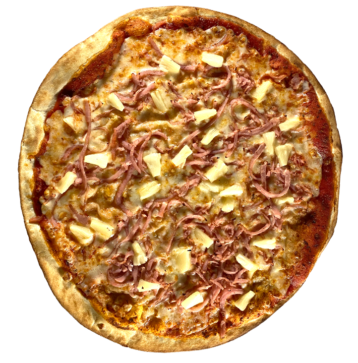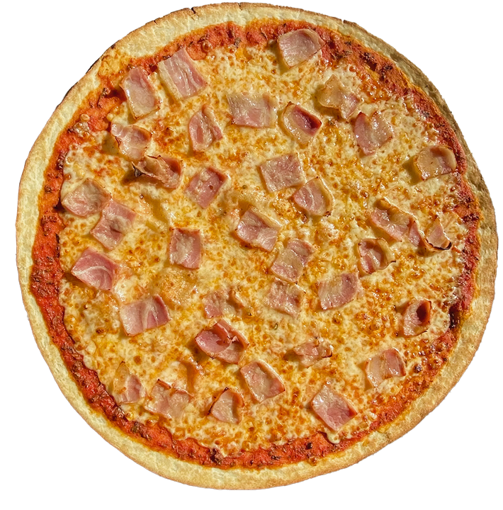 Jugosa pizza gracias a la mezcla de la mozzarella pura y el queso cheddar, con jamon york que le aporta firmeza y sabor.