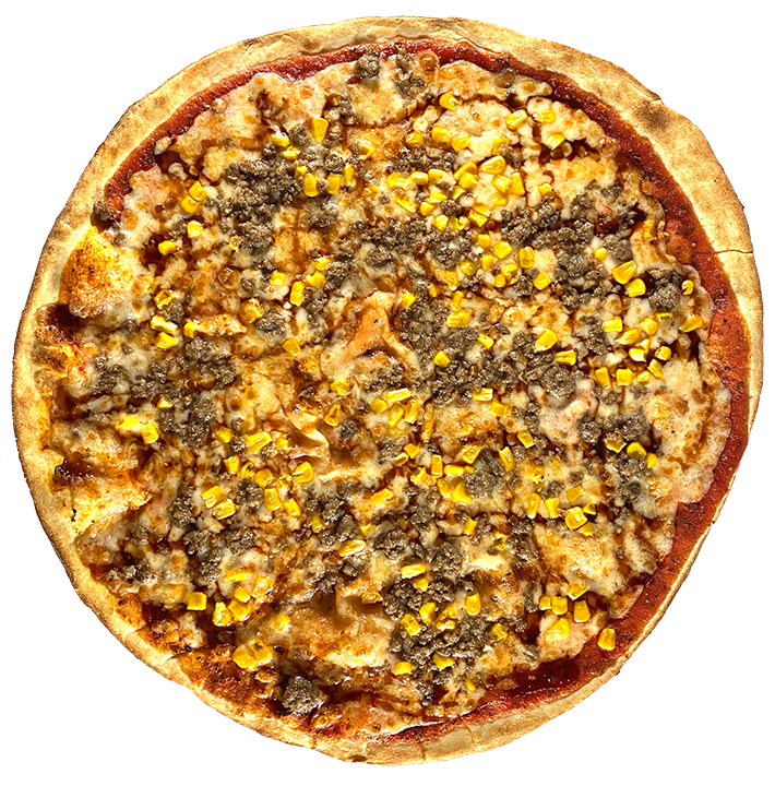 Ingr.: Tomate, Mozzarella pura, Salsa Barbacoa, Maíz, Ternera