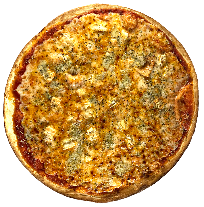 Ingr.: Tomate, Mozzarella pura, Salsa barbacoa, Pollo, Chedar.