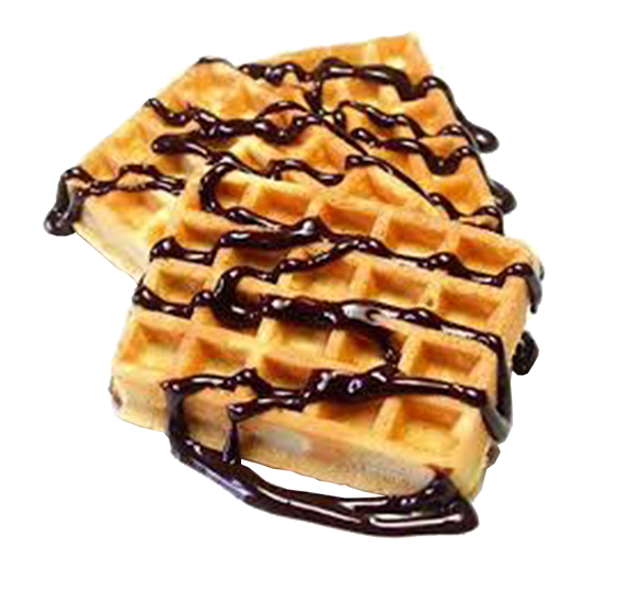 Gofre extragrande horneado con sirope a elegir, fideos de azúcar de colores y azúcar glass.